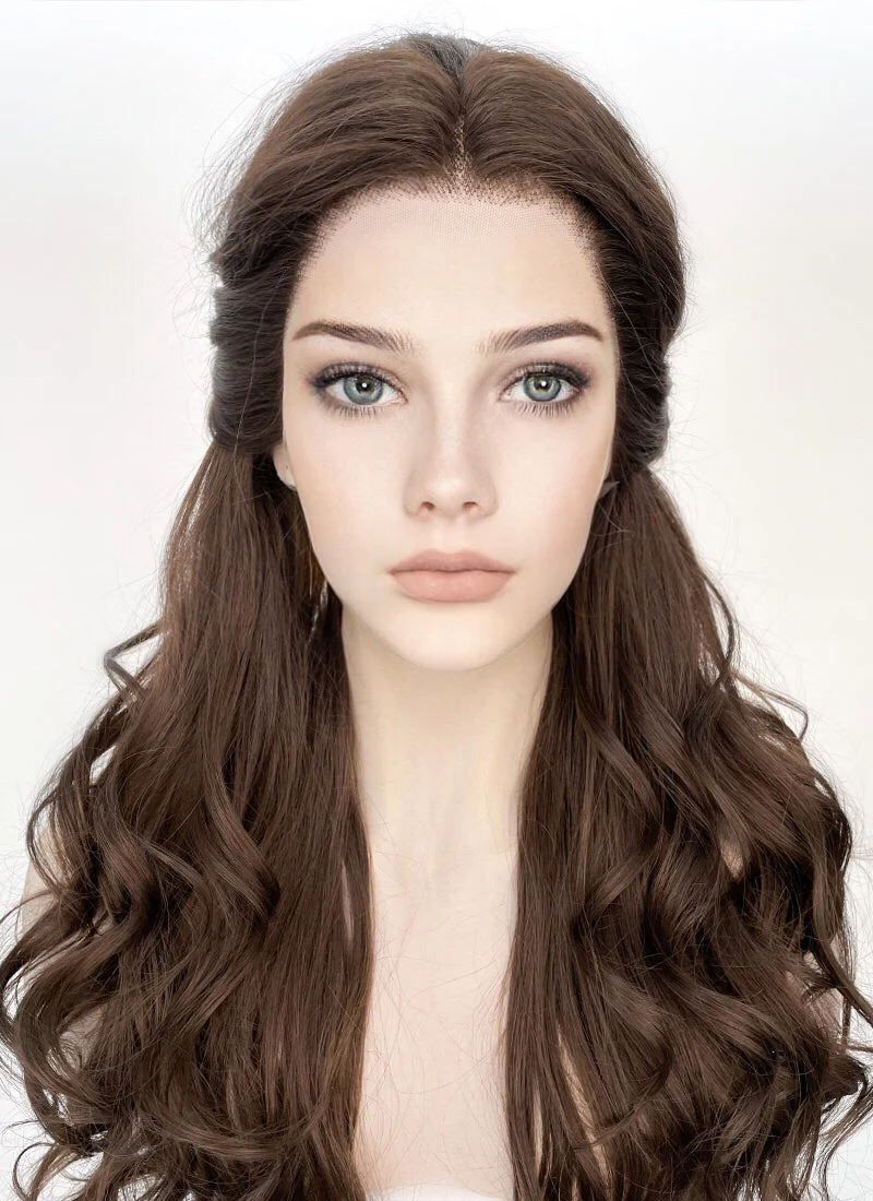 Wavy Dark Brown Braided Belle Beauty and the Beast Lace Front Synthetic Wig LF2028