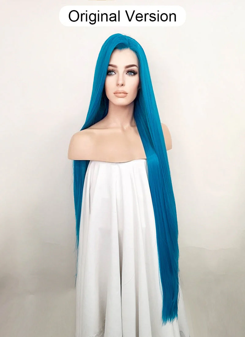 League of Legends LOL Arcane Jinx Turquoise Blue Straight Lace Front Synthetic Wig LN6020