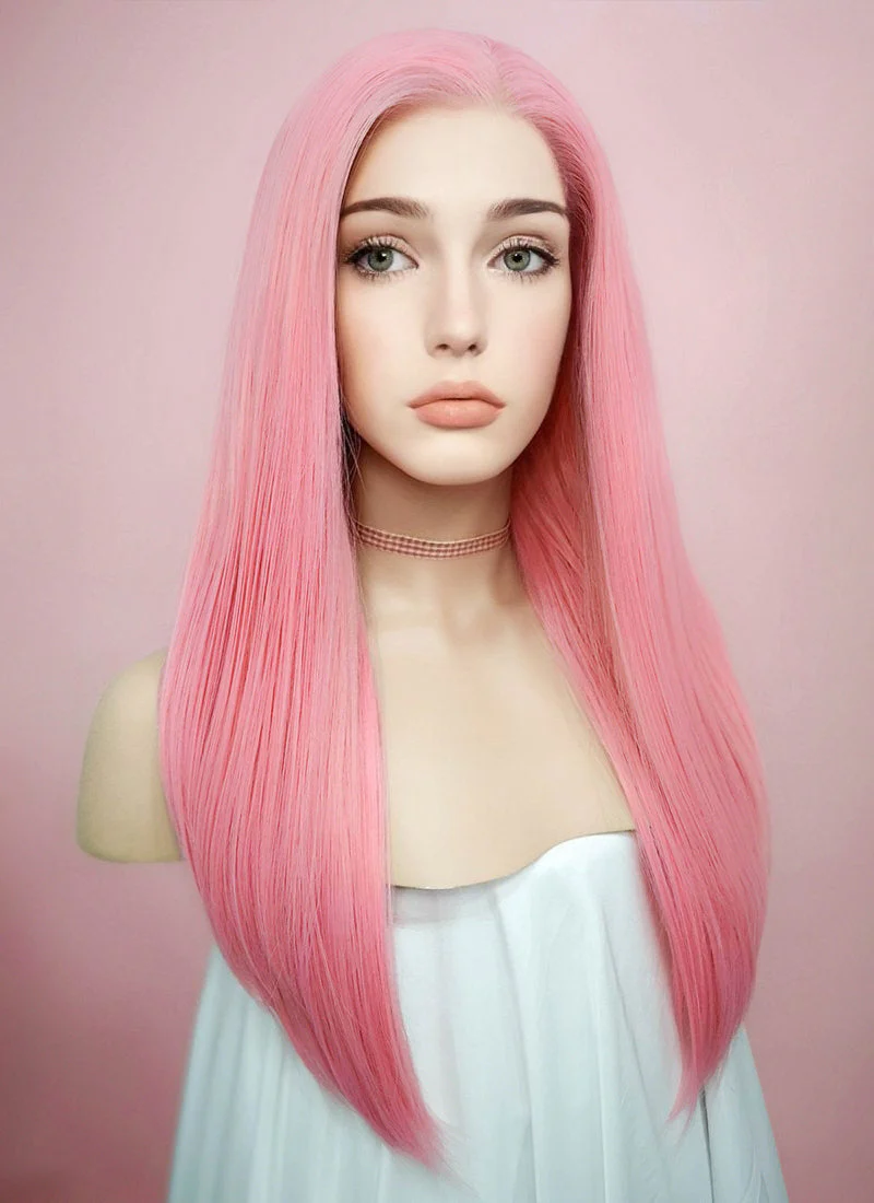 Straight Pastel Pink Lace Front Synthetic Wig LW769C