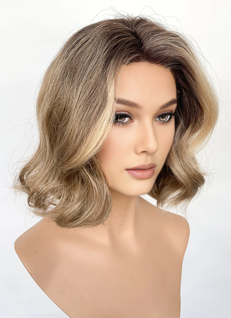 Brown Mixed Blonde With Dark Roots Wavy Synthetic Hair Wig NL1002