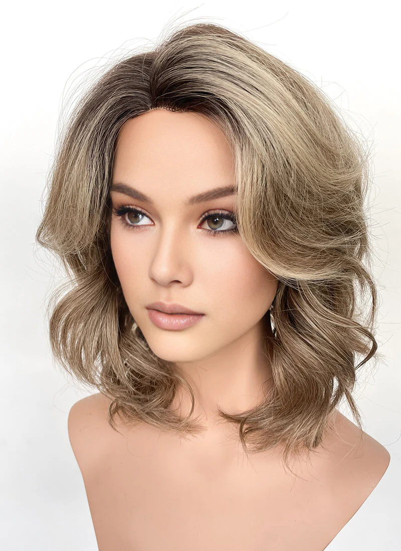 Brown Mixed Blonde With Dark Roots Wavy Synthetic Hair Wig NL1003